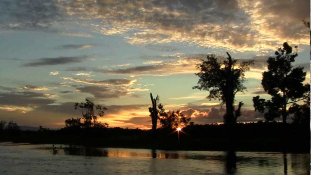 Aquí el río se divide en inmensos brazos, para estrechar mejor las islas incultas. En esa península del lado derecho, se ve el caney de los apestados, detenidos en cuarentena. Por detrás desemboca el Yurubaxi.