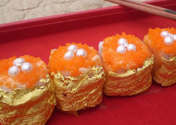 2. Sushi del Oriente. Envuelto en hojas de oro de 24 quilates y salpicado con diamantes de 0.20 quilates. Una receta del chef Angelito Araneta Jr.