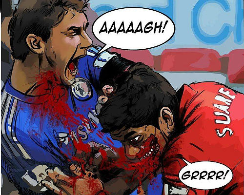 El lado oscuro del delantero del Liverpool, elegido hace poco como el mejor jugador de la liga inglesa, no se limita a un área específica. Su hoja de vida cuenta con varias distinciones. Ha mordido a dos jugadores, por lo que se ganó el apodo de ‘el Canibal’ en Holanda: a Otman Bakkal, cuando juagaba en el Ajax, y a Branislav Ivanovic, la temporada pasada.