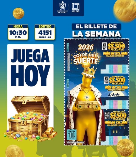La Lotería del Tolima se juega todos los lunes, pero debido al reciente puente festivo se jugó este martes. El próximo sorteo será el 19 de enero de 2026.