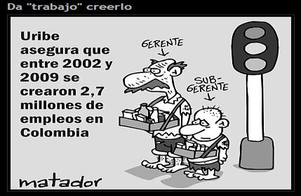 Uribe vestido de mujer, Uribe próximo a perder la soberanía con el Tío Sam, Uribe hablando con el diablo, Uribe sobornando y muchos uribes más, se han convertido en la columna vertebral gráfica de Matador.