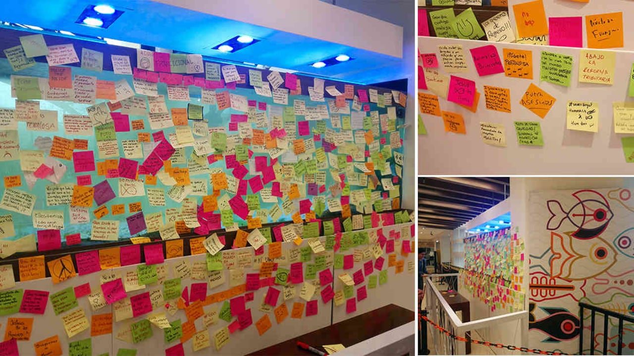 Todo inició el 12 de enero cuando algunos visitantes del centro comercial pegaron los primeros mensajes por voluntad propia, a lo que Atlantis respondió habilitando una mesa con marcadores y notas adhesivas en limpio para que las personas se expresen.