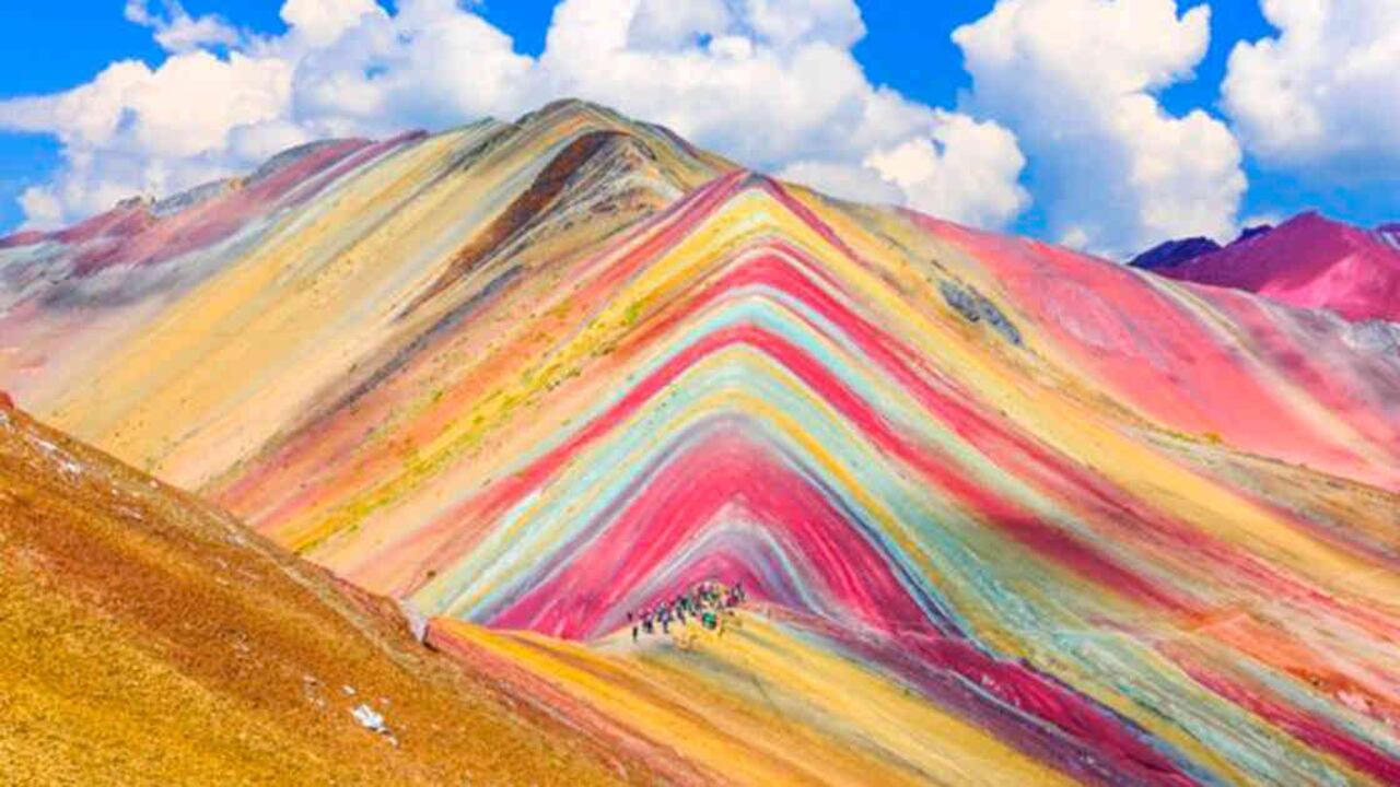 A unos 100 kilómetros al sureste de Cusco, Perú, existe un arcoíris hecho montaña.