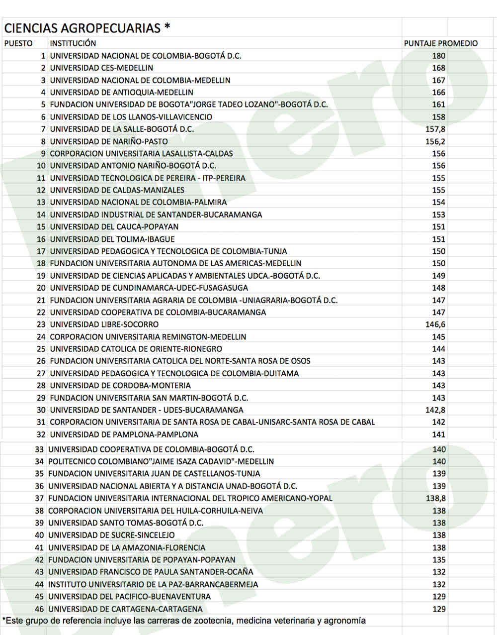 Dinero hizo una clasificación de las mejores universidades en ciencias agropecuarias. Para efectos de este ranking no se incluyen las instituciones de formación técnica ni tecnológica, solo se comparan universidades e instituciones universitarias.