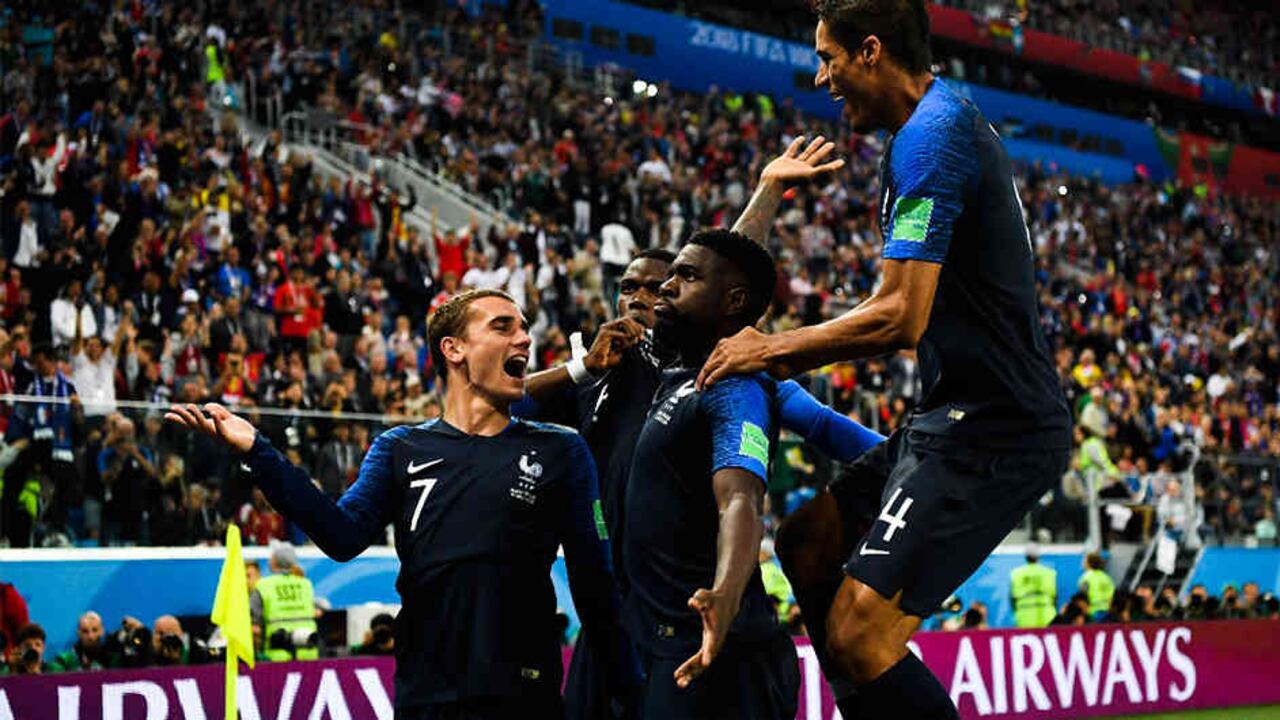 En un tiro de esquina, Antoine Griezmann metió un centro que le llegó a la cabeza de Samuel Umtiti. El balón se fue al fondo de la portería, imposible para atajar por parte del guardameta Courtois. Francia se fue arriba.