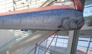 El pez remo es una especie de aguas profundas que puede alcanzar hasta ocho metros de largo, aunque hay reportes no confirmados de individuos de más de 11 metros. También conocido como “rey de los arenques” o “pez del fin del mundo”, su presencia en la superficie está rodeada de mitos, especialmente en la cultura japonesa, donde se le atribuye la capacidad de anticipar desastres naturales.
