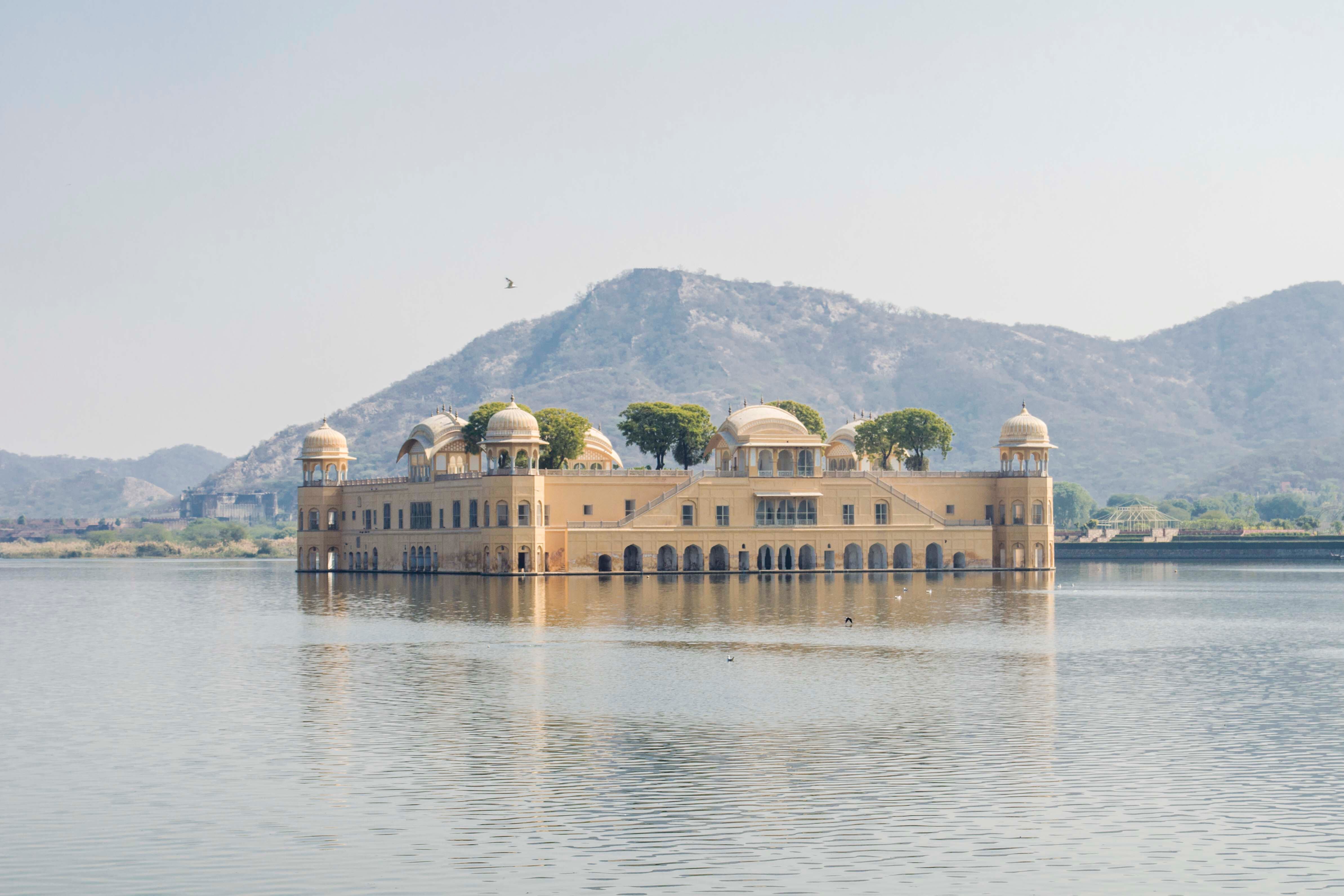 Foto: Katerine Lara RojasEl Jal Mahal o Palacio del Agua está ubicado en medio del lago de Man Sagar. Tiene cinco pisos, de los cuales cuatro permanecen bajo el agua cuando el lago está lleno. Actualmente está deshabitado. Fotografía de Katerine Lara Rojas.