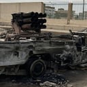 En un vehículo blindado, atraviesan las ruinas ennegrecidas del campamento de refugiados de Zamzam mientras escuchan reguetón. “Está destruida”, dice uno con acento colombiano.