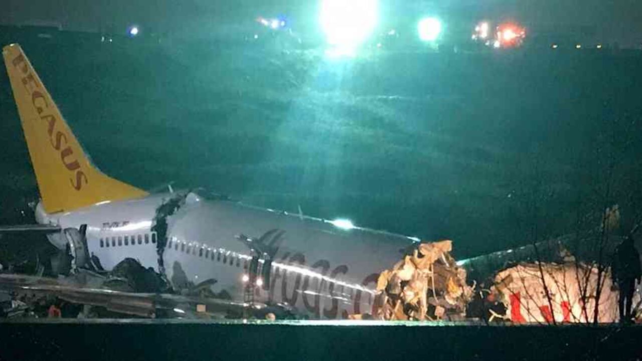Según el Ministerio Turco de Transporte e Infraestructura, la aeronave llegaba de Esmirna, una provincia turca, y cuando estaba aterrizando patinó en la pista. Debido a esto, el avión posteriormente chocó, estalló en llamas y su estructura se partió en dos. Inmediatamente después del accidente llegaron varios bomberos y paramédicos para atender la emergencia.
