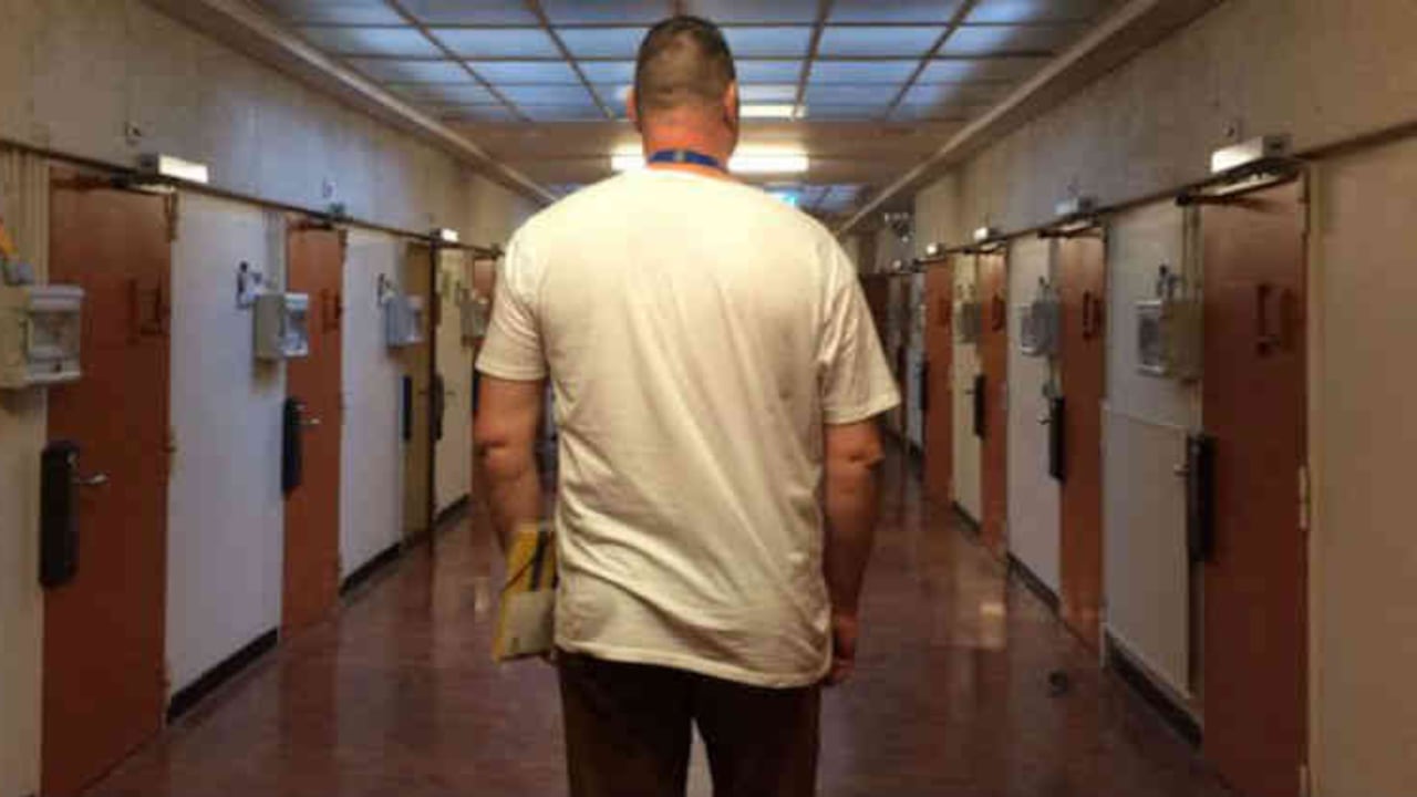 El olor a cebolla frita sube por la escalera de metal, más allá de las puertas de las celdas y a lo largo del pabellón. Abajo, en la cocina, los internos están preparando su cena. Uno de ellos empuña un cuchillo de sierra largo y corta verduras con pericia.