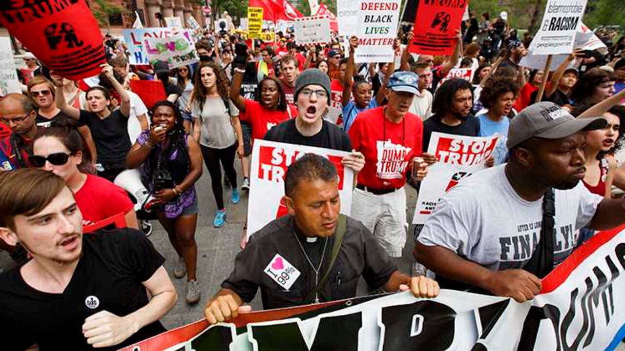El ambiente en el complejo Quicken Loans Arena se tensó cuando opositores y seguidores de Trump se enfrentaron en un duelo de eslóganes, gritos y silbidos, en una nueva muestra de las profundas divisiones que suscita la candidatura del polémico millonario.