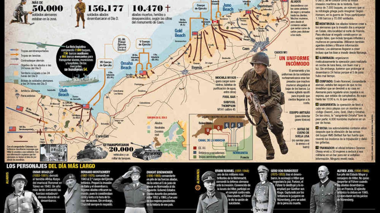 + Sangrienta: la operación se llevó a cabo en cinco playas con un nombre en código (Sword, Juno, Gold, Utah y Omaha). De las cinco, la “sangrienta Omaha” tuvo la peor parte; 4.000 hombres murieron en un par de horas.