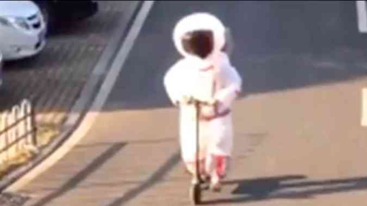 Y ni qué decir de este hombre asiático que se puso un traje espacial para salir de su vivienda a hacer unas compras, mientras montaba en una patineta.