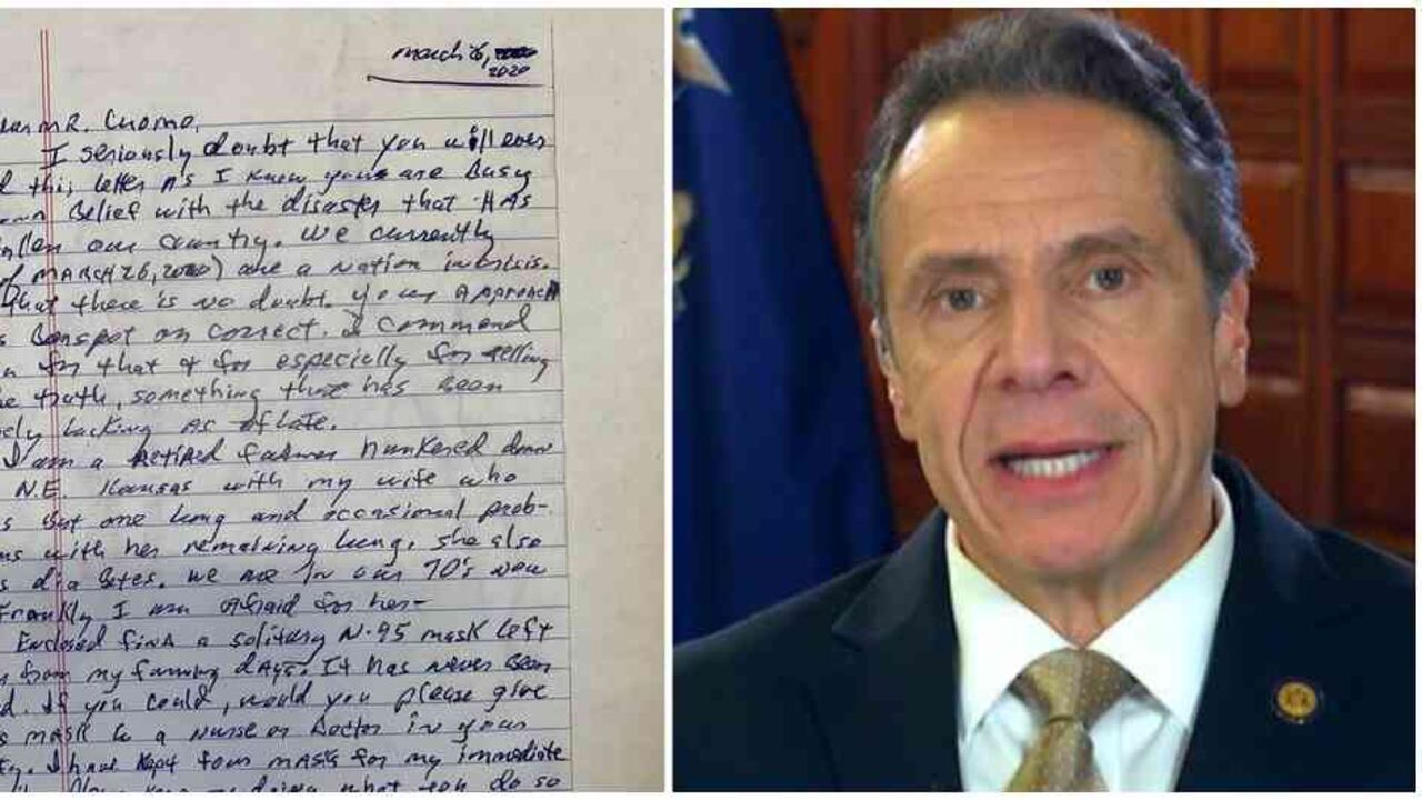 “Adjunto encontrará una solitaria máscara N95 que me quedó de mis días de agricultor. Nunca ha sido usada. Si pudiera, ¿podría darle esta máscara a una enfermera o a un médico en su estado? He guardado cuatro máscaras para mi familia inmediata. Por favor, siga haciendo lo que hace tan bien, que es dirigir. Sinceramente, Dennis y Sharon", decía la carta.