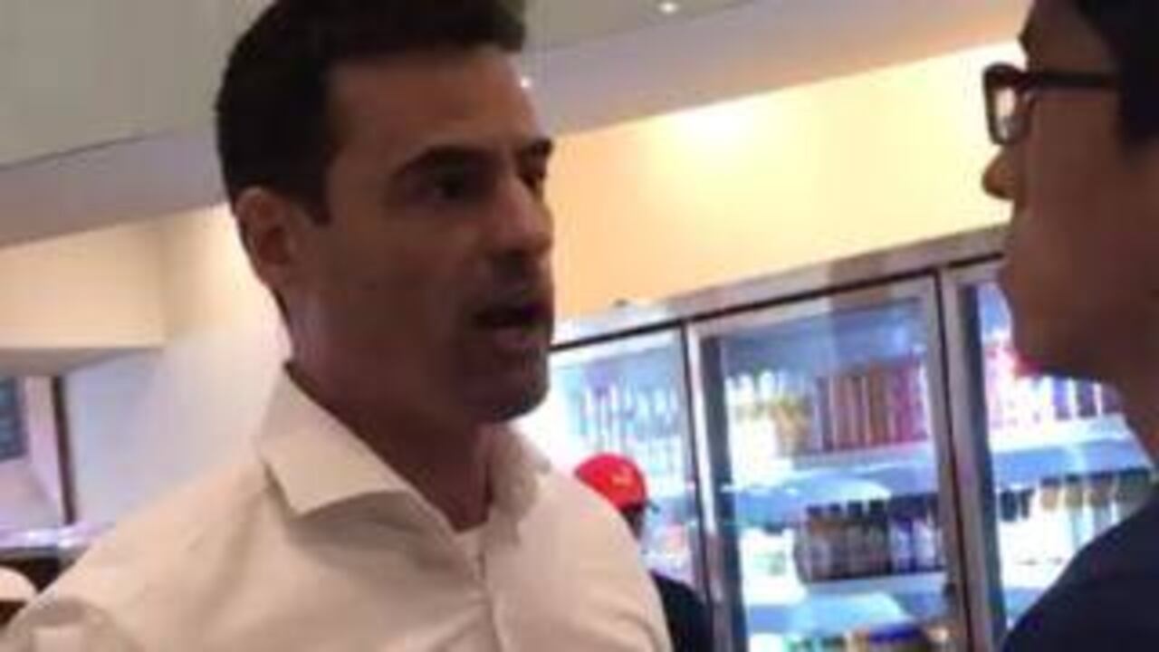 Luego, confronta a la persona que estaba grabando el video, mientras varios de los comensales lo condenan y lo llaman "ignorante".