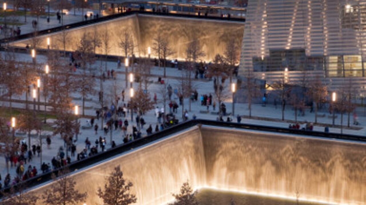 El Memorial del 11-S, diseñado por Michael Arad y Peter Walker, está compuesto por las enormes piscinas de las que brota agua y a cuyo alrededor están grabados en bronce los nombres de las 2.983 personas que murieron el 11-S en Nueva York, y de los fallecidos en el Pentágono y en Pensilvania, así como los de los muertos en el primer atentado contra el World Trade Center en 1993.
