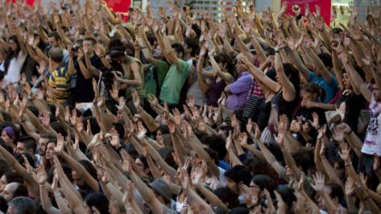 En Barcelona, donde el viernes hubo enfrentamientos con la policía que les quiso desalojar a la fuerza, centenares de "indignados" en la plaza de Catalunya se levantaron tarde, pero de buen ánimo porque ayer la protesta social no se contagió de los violentos altercados que anoche vivió la ciudad durante la celebración de la victoria del Barça en la Champions.