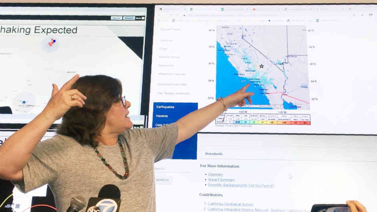 Existe al menos un 10 por ciento de probabilidades de un sismo de magnitud 7 o superior la semana próxima, estimó la sismóloga Lucy Jones, del Instituto Californiano de Tecnología (Caltech).