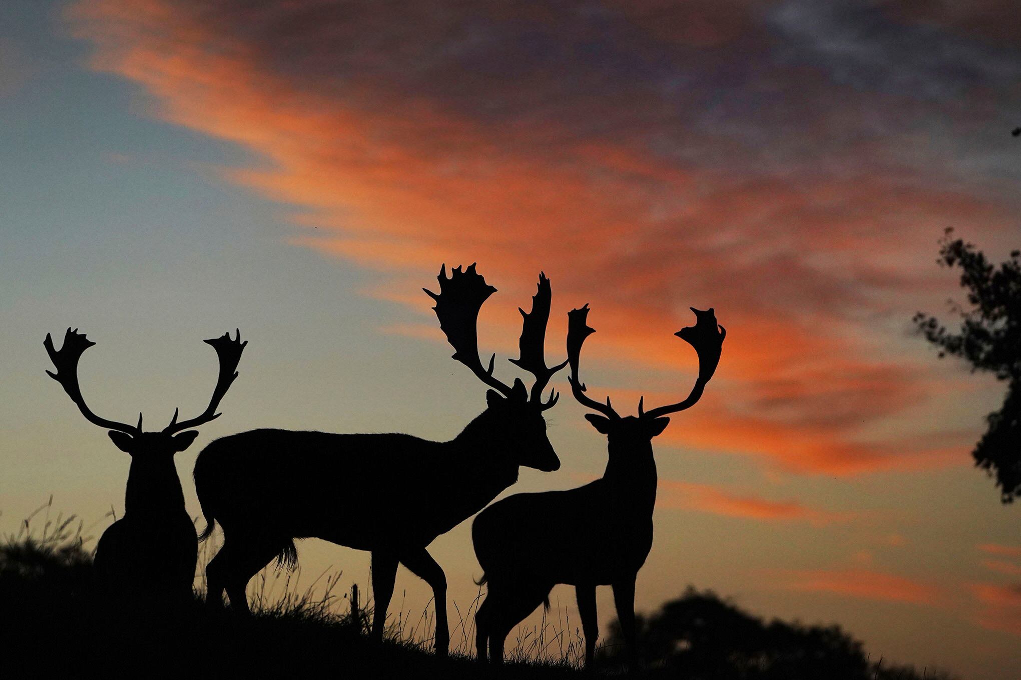 Foto: APSiluetas de ciervos durante el amanecer en Raby Castle, un castillo medieval cerca de Staindrop, Inglaterra. Foto: Owen Humphreys / PA vía AP.