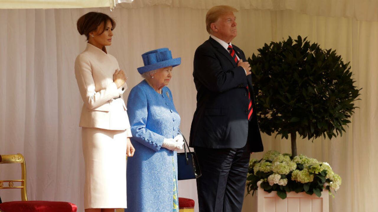La reina, sonriente, estrechó las manos y charló brevemente con Trump y su mujer a las puertas del castillo, antes de que se interpretaran los himnos nacionales y de que el presidente y la monarca pasaran revista a la Guardia Real.