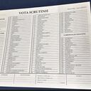 Dos escrutadores anotan los nombres, mientras que un tercero los lee en voz alta y perfora las papeletas con una aguja en el punto en el que se encuentra la palabra Eligo. Los revisores verifican a continuación que no se hayan cometido errores.