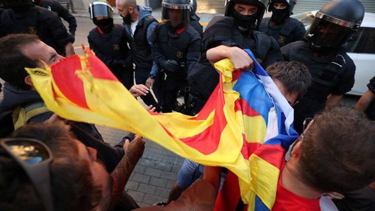 Los choques estallaron menos de una hora después de abrir las urnas y no mucho antes de la esperada llegada del presidente catalán Puigdemont. Los empleados de las casillas que estaban dentro del edificio reaccionaron pacíficamente y comenzaron a cantar y decir lemas en desafío a la presidencia de los policías.