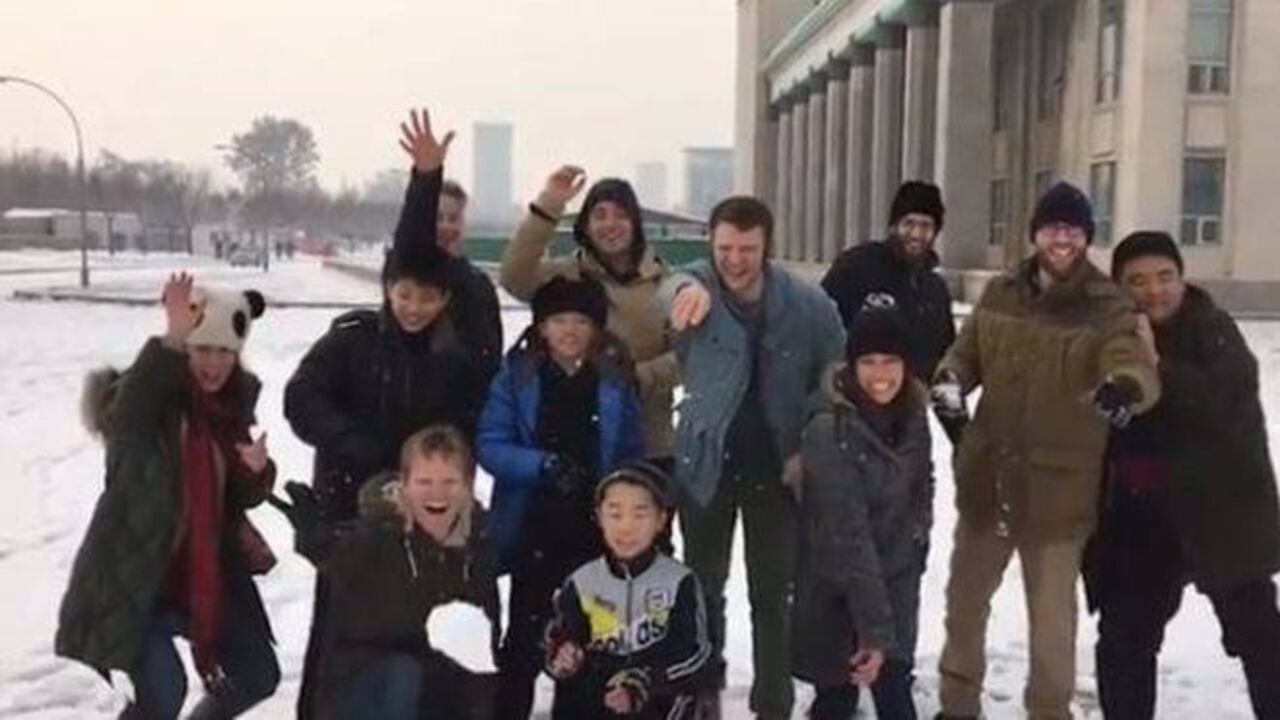 Todos están alegres y sonrientes en la imagen, a pesar del frío en Corea del Norte. El joven estadounidense Otto Warmbier, como los otros turistas, lanza una bola de nieve hacia el lente de una videograbadora, que captura el momento en cámara lenta.