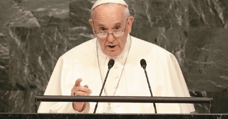 Francisco se presentó como el representante de los más necesitados en la Asamblea General de la ONU, ante decenas de jefes de Estado y de gobierno. Sus llamados a favor de los pobres, en contra del capitalismo salvaje y para combatir el cambio climático constituyen un mensaje contundente. “Los organismos financieros internacionales han de velar por el desarrollo sostenible de los países y la no sumisión asfixiante de estos a sistemas crediticios que, lejos de promover el progreso, someten a las poblaciones a mecanismos de mayor pobreza, exclusión y dependencia”, afirmó el sumo pontífice argentino.