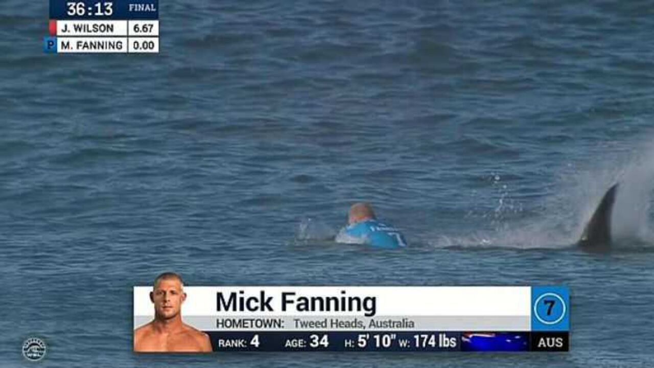 Derribado de su tabla por un tiburón, el mejor surfista del mundo alcanzó a reaccionar y le pegó un puñetazo para intentar escapar. No se sabe con certeza si el tiburón se asustó o cuál fue el motivo, pero no insistió en su presa y sorprendentemente el australiano de 34 años salió ileso el domingo durante las finales de una competencia de surf.