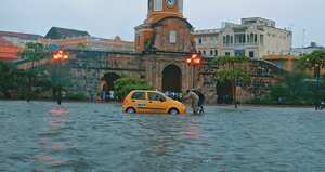 Las personas se ven aterrorizadas esperando a que cesen las lluvias mientras fuera del edificio se puede ver un torrencial de agua inundando las calles acompañado de fuertes relámpagos e incluso parte de la biblioteca ya se puede ver inundada en las imágenes.