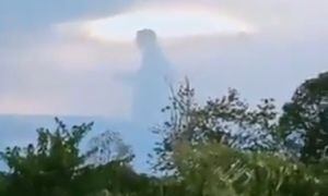 Cuando el sol se pone en el cielo a medida que se acerca el atardecer, la sombra que una persona proyecta sobre el suelo se hace más larga, al igual que la larga sombra que apareció en el cielo en Florida.