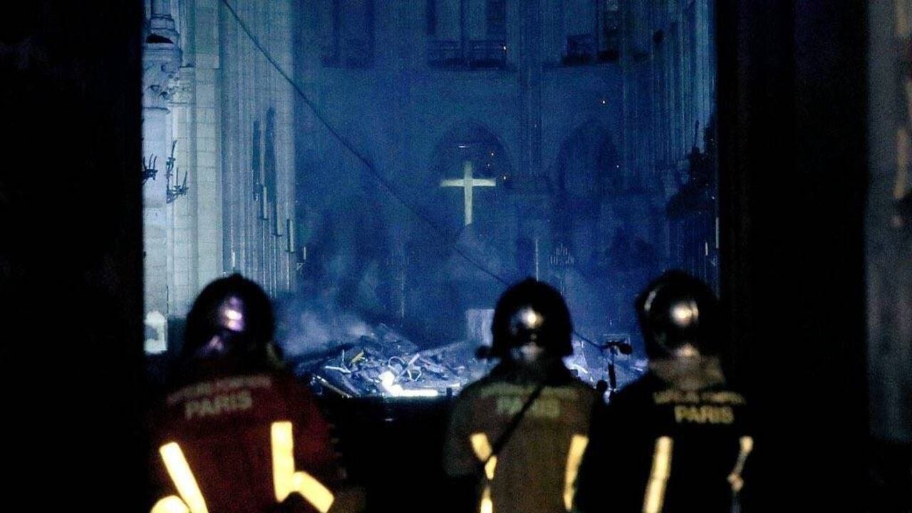 ¡Vaya imagen! Reportan que los bomberos lograron extinguir las llamas en la catedral de Notre Dame #París. La estructura principal se ha salvado… Y la Cruz en pie.https://t.co/R0eF45uQtY