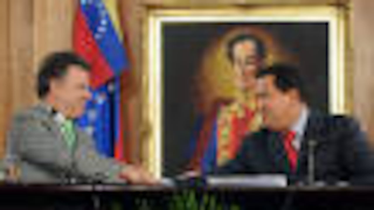 Santos se refirió a Chávez como su "nuevo mejor amigo" y dijo que, si bien ninguno de los dos ha sido "santo de la devoción" del otro, él decidió que de llegar a la presidencia debía mejorar las relaciones con su vecino, lo cual comenzó en agosto con el restablecimiento de los lazos diplomáticos.