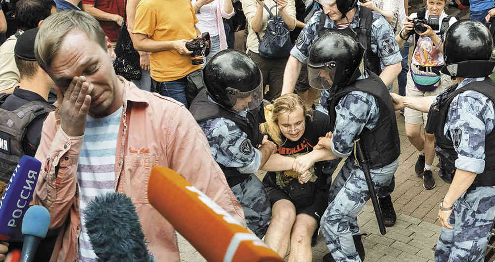 400 detenidos en Moscú por protestar contra los abusos policiales y apoyar al periodista Iván Golunov, a quien detuvieron por supuesto tráfico de drogas.