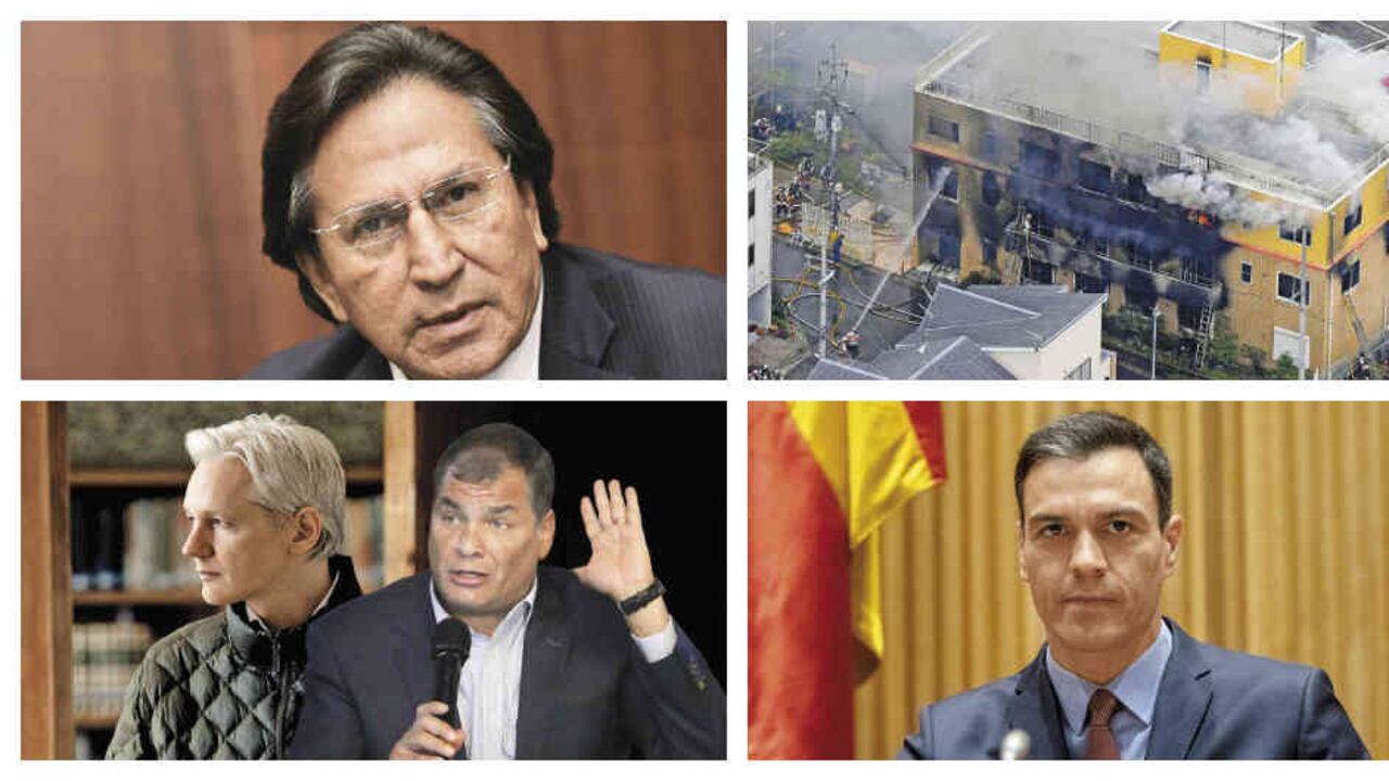 El expresidente peruano, Alejandro Toledo, fue capturado en Estados Unidos, la alianza entre los partidos españoles PSOE y Podemos no se ha podido concretar, Facebook deberá pagar 5 mil millones de dólares por comercializar datos de sus usuarios, y una masacre viste de luto a Japón.