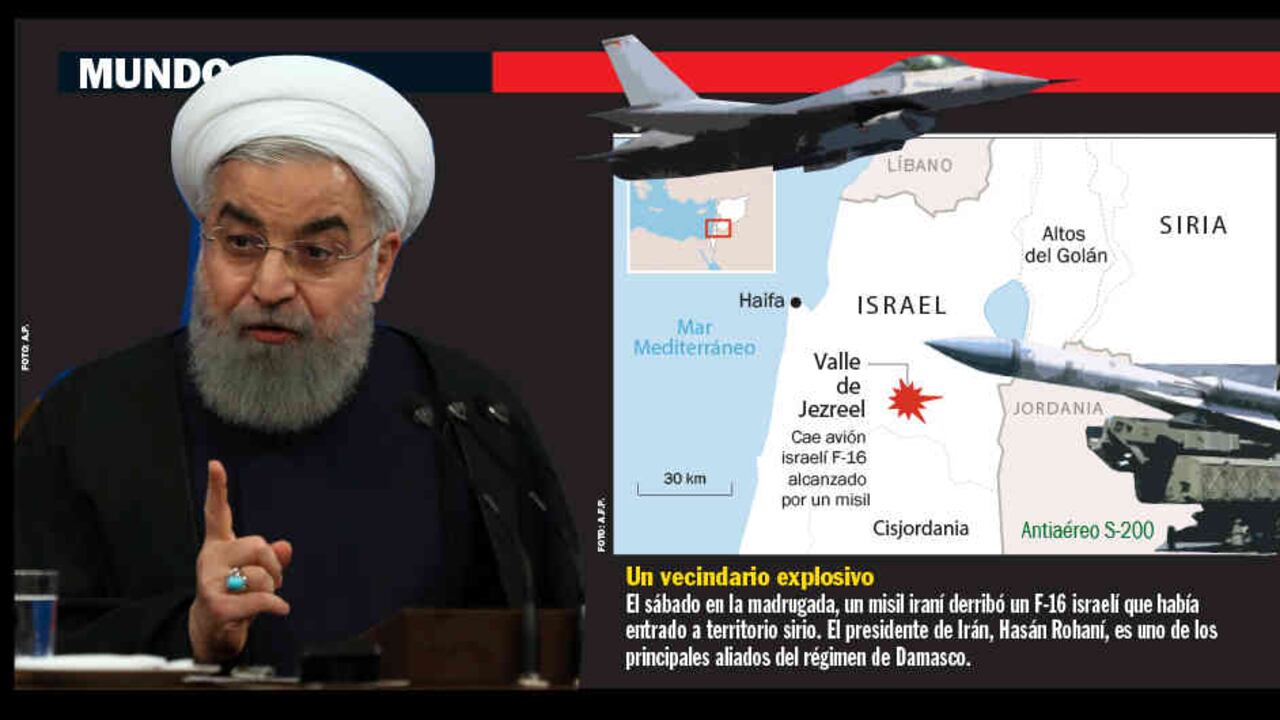Todo comenzó el sábado, cuando un dron iraní proveniente de Siria entró a los Altos del Golán, la estratégica franja montañosa que Israel ocupa desde hace 50 años. En cuestión de minutos, un helicóptero israelí abatió el aparato y una flotilla de aviones F-16 bombardeó varias instalaciones sirias e iraníes. Las fuerzas sirio-iraníes respondieron con varios misiles antiaéreos y abatieron una de esas aeronaves. Desde 1982, la Fuerza Aérea israelí no perdía un cazabombardero en un combate.