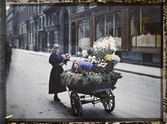 Une marchande de fleurs, en face du 53 rue Cambon, Paris, 25 juin 1918 Copyright Museé Albert Kahn