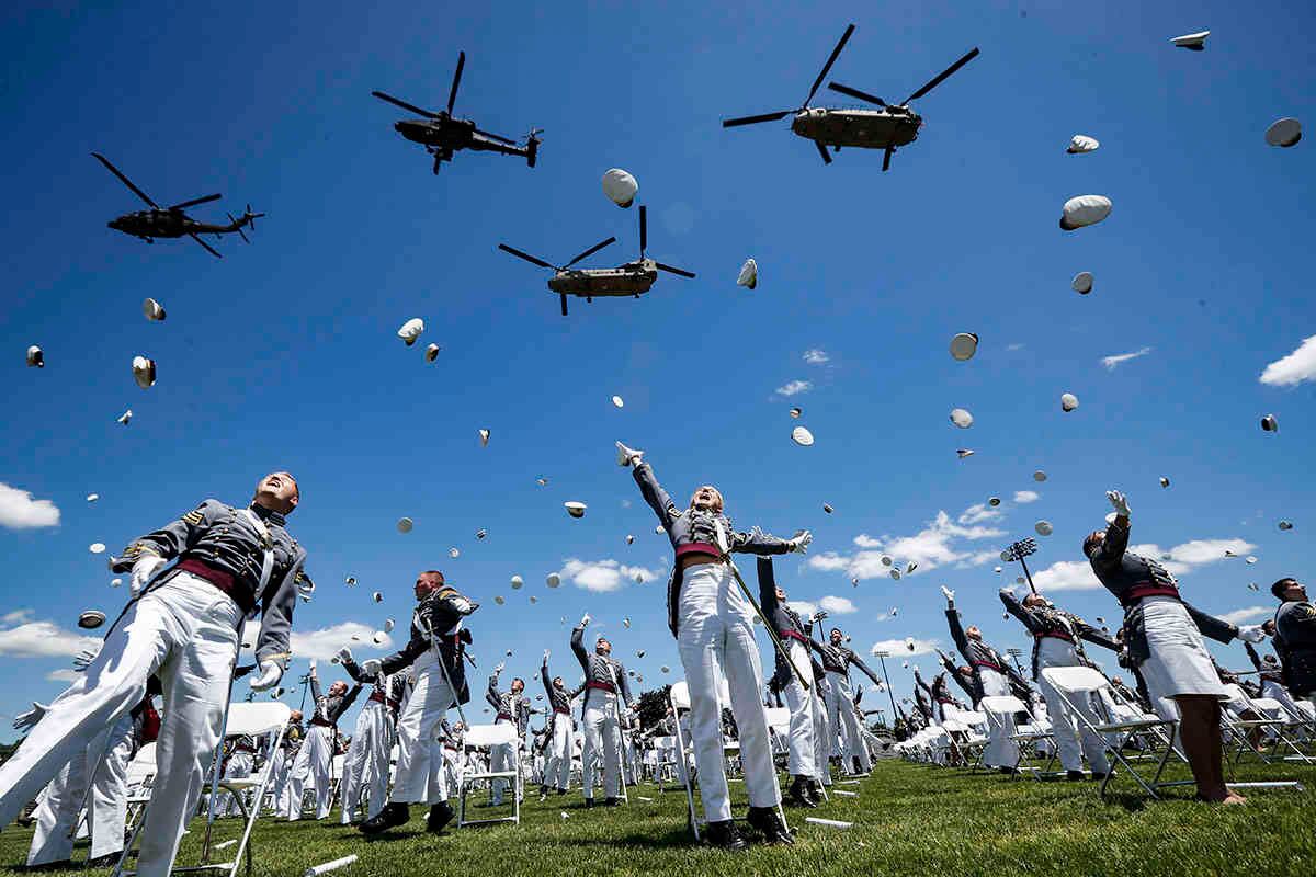 Cadetes de la Academia Militar de Estados Unidos celebran su graduación, el 13 de junio, en West Point, Estados Unidos. Foto: John Minchillo, Pool/ AP