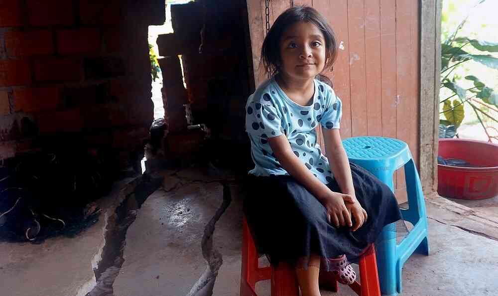 Esta niña está sentada en su casa en Yurimaguas, región amazónica peruana, luego del sismo de 8 grados que sacudió al norte de este país. Foto: AFP