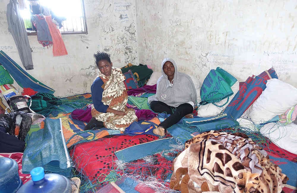 Aproximadamente 40 presos en el centro de detención en el momento de la visita. Ellos reportaron ser de Nigeria y se mantuvieron aquí desde primer mes sin ningún contacto con el mundo exterior o sus familias en casa. Mujeres muy deprimidas y desesperas pidiendo ayuda.