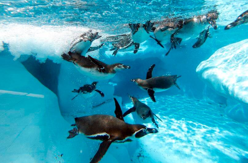 Pingüinos nadando en un estanque del zoológico de Belgrado, en Serbia, el martes 2 de julio de 2019. Las autoridades han advertido sobre las temperaturas extremadamente altas en Serbia y el resto de los Balcanes, ocasionados por una ola de calor que ha afectado fuertemente a Europa occidental. (Foto AP / Darko Vojinovic)