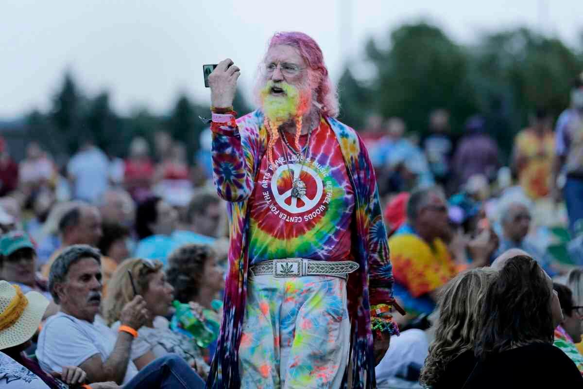 Un hombre camina entre la multitud durante un concierto de Arlo Guthrie que conmemora el 50 aniversario de Woodstock en Bethel, Nueva York, el jueves 15 de agosto de 2019. Se espera que los fanáticos de Woodstock regresen al lugar para conmemorar el 50 aniversario del festival que marcó a toda una generación. Bethel Woods Center for the Arts está organizando una serie de eventos de jueves a domingo en el bucólico sitio de los conciertos de 1969, 130 kilómetros al noroeste de la ciudad de Nueva York. (Foto AP / Seth Wenig)