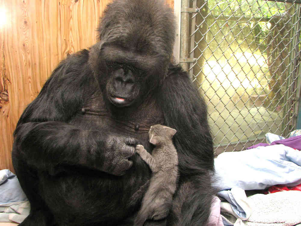 Koko y la señora Gray, uno de los gatos que la gorila adoptó como sus propios bebés durante su vida. Foto:www.koko.org