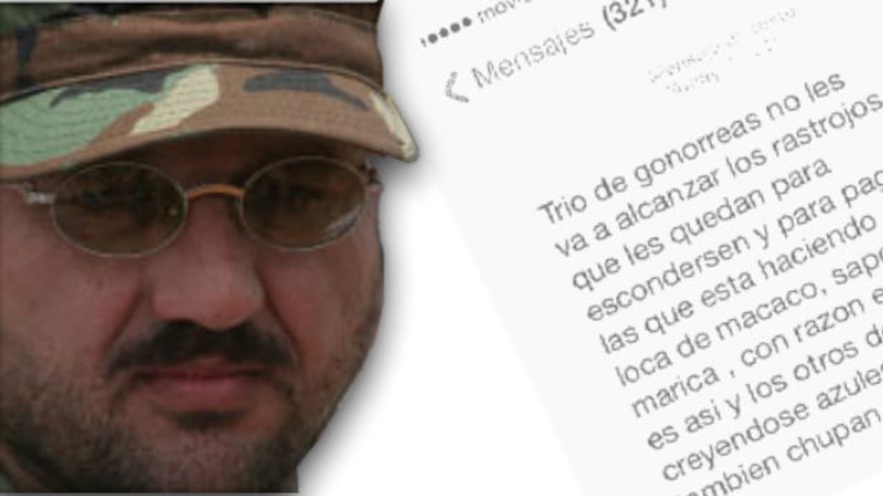 El mensaje conocido por Semana.com dicen textualmente: “Trio de gonorreas no les va alcanzar los rastrojos que les quedan para esconderse y para pagar lo que está haciendo esa loca de macaco, sapo y marica, con razón el hijo es así y los otros dos creyéndose azules también chupan”.