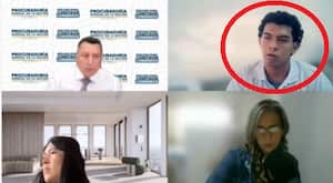 Además, hizo algunos movimientos con la boca y, segundos después, se mostró un poco inquieto, intentó acomodarse en la silla en la que se encontraba sentado. Al tiempo, su mirada la dirigía hacia abajo y hacia el computador en el que seguía la audiencia.
