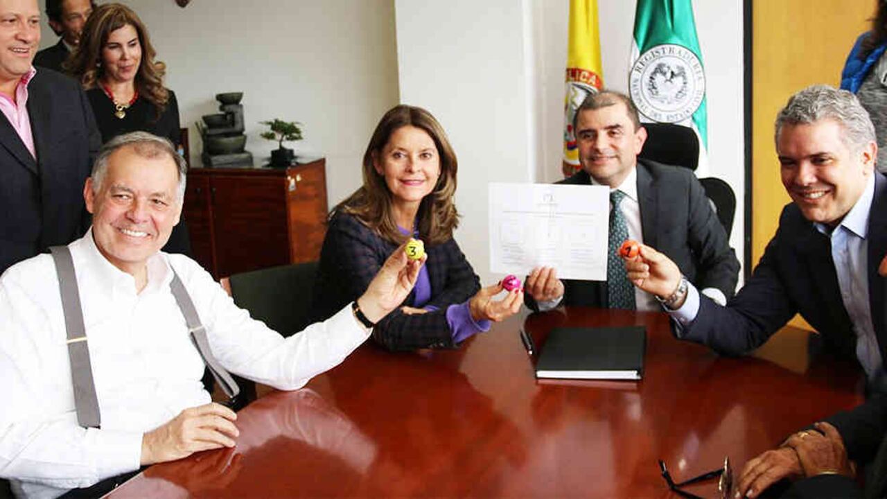 Este lunes, entre las siete y ocho de la mañana, Marta Lucía comenzó el diálogo con Pastrana y los miembros de su campaña para dar una respuesta oficial. Ya estaba decidida a admitir la consulta y eso fue lo que hizo. De hecho, aceptó verse con Ordóñez y de nuevo con Duque, los tres juntos, para dejar la imagen pública, en la Registraduría, de que la alianza de derecha era una realidad. Tanto que de forma inmediata se sortearon los lugares en el tarjetón de la consulta de marzo. El del Centro Democrático tendrá el puesto 1 del tarjetón, la canditata el 2 y el exprocurador el 3.