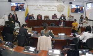 SEMANA conoció que a la comisión llegó el presidente de la Cámara, David Racero, a intermediar la situación. Posteriormente, se reunió a puerta cerrada con el presidente de esa comisión, Agmeth Escaf, también del Pacto Histórico, la ministra de Trabajo, Gloria Inés Ramírez, y la representante María Fernanda Carrascal, de esa misma bancada. Luego de varios minutos, Escaf volvió al recinto y anunció que se cancelaba la sesión.