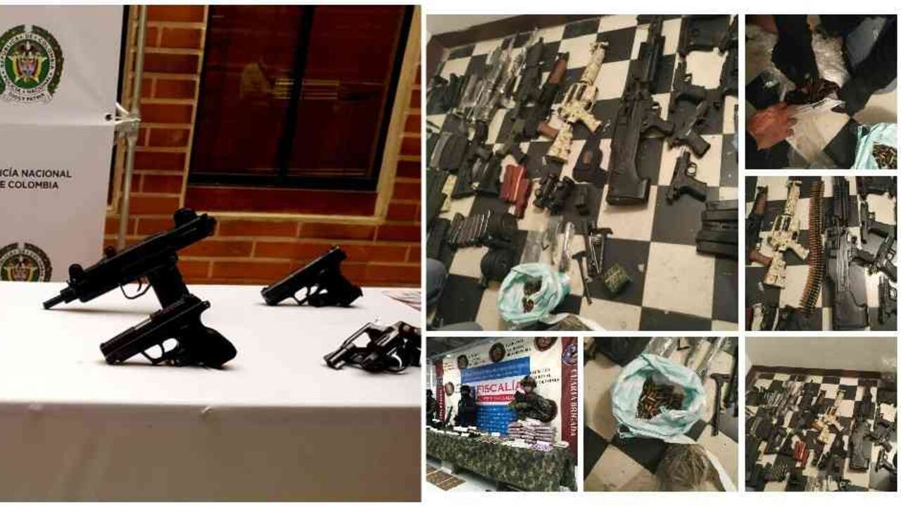 En un solo operativo realizado el martes 16 de abril en Bello, la Fiscalía incautó diez armas entre pistolas, revólveres y uzis, además de cartuchos y silenciadores, la persona que terminó capturada tenía en su poder más de 16 millones de pesos en efectivo. Y esta es la imagen diaria: hombres armados hasta los dientes, capturados con altas sumas de dinero producto de extorsiones y venta de drogas. Y la pregunta que queda entonces es: ¿para qué tantas armas, solo para extorsionar?