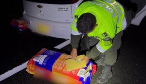 De acuerdo con la información oficial, uniformados de la seccional de Tránsito de Santander lograron detectar el millonario cargamento de droga, que era transportado por el municipio de Sanaba de Torres.
