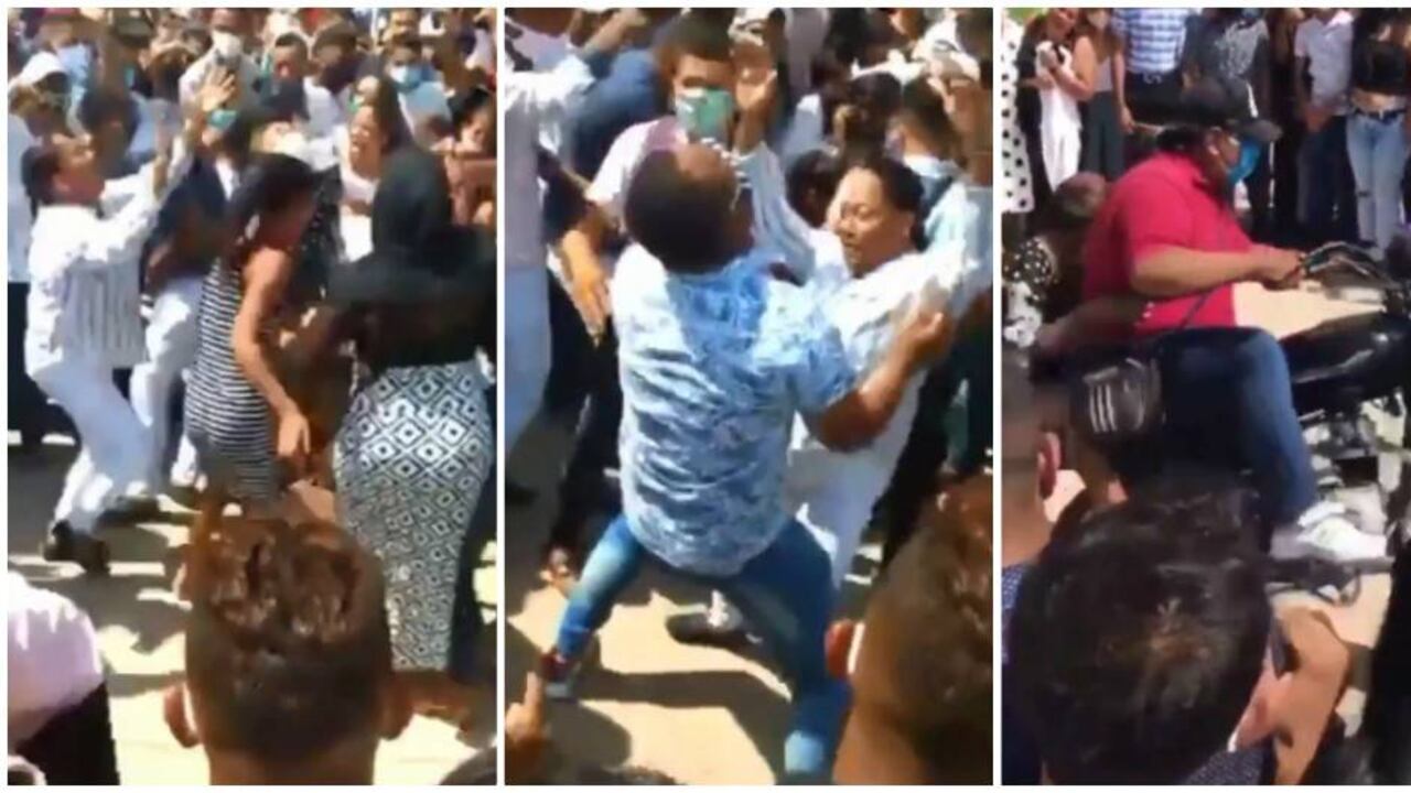 En las imágenes se muestra cómo los asistentes a las obras fúnebres no guardan distanciamiento social, muchos no hacen uso de tapabocas y además bailan champeta que suena a todo volumen en medio de la calle.